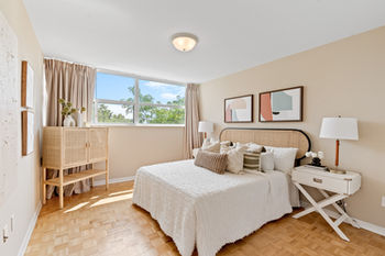 The layout is generous, with more room than you’d expect. The bathroom’s been fully refreshed. The kitchen wall opened up to create a breakfast bar. There’s also plenty of in-unit storage, so things you need are close, and things you don’t stay out of sight.