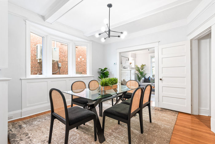 The living room connects to the dining room, where the bay window displays some of the home’s original details. It’s a space you’re inclined to linger. Further into the kitchen, you park at the island to enjoy a snack. That special spot for the coffee bar? The feeling of no regrets every morning.